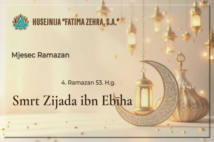 Na današnji dan, 4. mjeseca Ramazana 53. godine po Hidžri, u Kufi je umro Zijad ibn Ebīh, jedna od najkontroverznijih ličnosti rane islamske historije, poznat po svojoj ekstremnoj okrutnosti prema Ehli-bejtu i njihovim prijateljima.[1]
