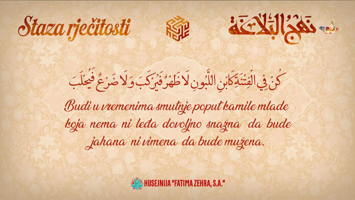 Ako ih ostaviš, neće te napustiti, a ako ih slijediš, prevariće te. Braća su im samo po vanjštini, a neprijatelji su im u tajnosti, druže se bez bogosvjesnosti. Kada se razdvoje, jedni druge prekoravaju. U njima umiru sunneti, a oživljavaju novotarije. Najgluplji su oni koji tuguju zbog gubitka takvih ili se raduju njihovom broju. Stoga, budi u vremenima smutnje poput kamile mlade, koja nema ni leđa dovoljno snažna, da bude jahana, ni dlake da bude strižena, ni vimena, da bude mužena…[7]