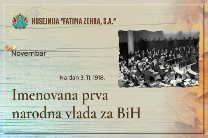 3. novembra 1918. godine imenovana je prva narodna vlada za Bosnu i Hercegovinu, sa 10 članova, u kojoj su predsjednik i pet ministara (ili povjerenika) bili Srbi, tri Hrvata i jedan Bošnjak. Predsjednik Vlade bio je Atanasije Šola.