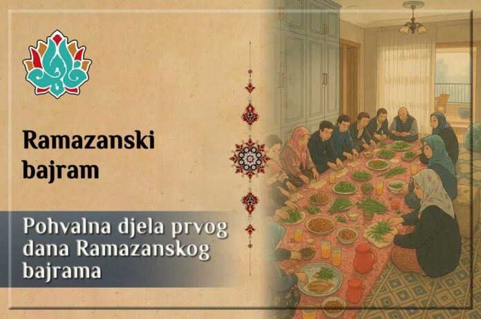 Djela koja je pohvalno činiti prvog dana Ramazanskog bajrama su sljedeća: